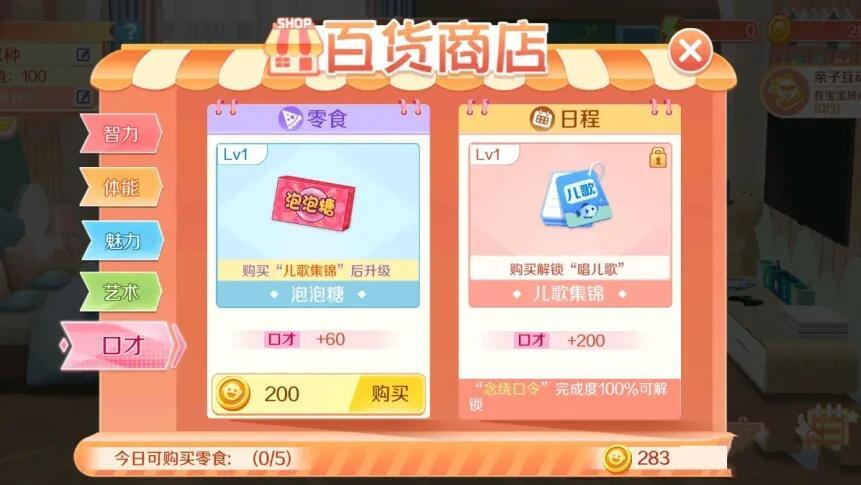 一定有小主人要问啦,这些材料和货币都能用来做什么捏?首先,零花钱的用途是可以购买五种零食和进化课程!