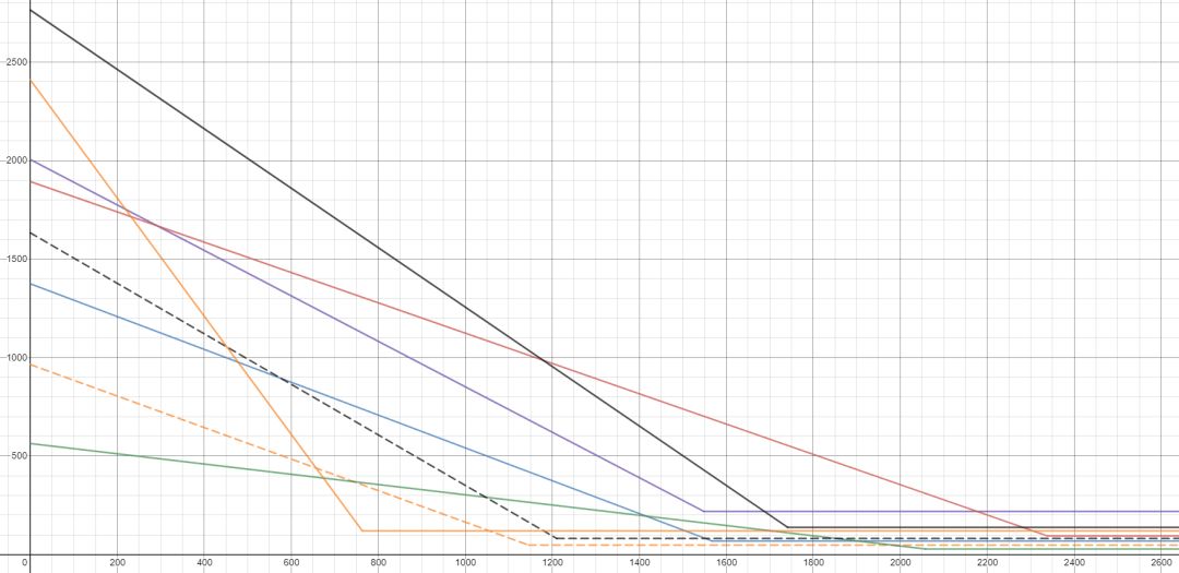 横轴-目标防御 纵轴-dps (假设多个目标防御相同)