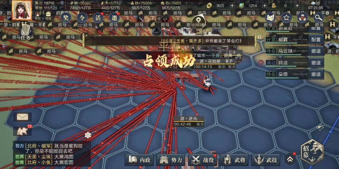S2顶着两个盟的驻守,三次强开八级关口平春,拿下平春@手Q66区鸿途万道