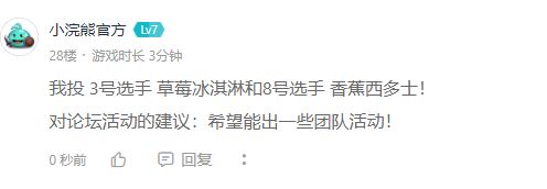 2. 道友们将投票选手的名字与对论坛活动的建议评论在本贴下方 例如:
