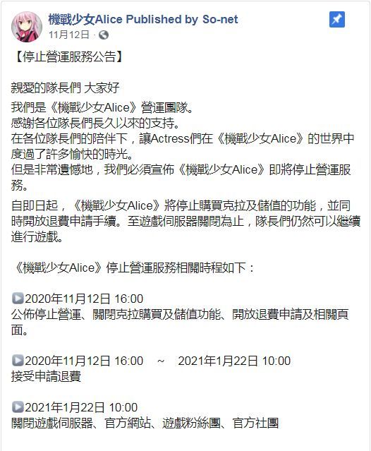 2021年01月22日将关闭台服