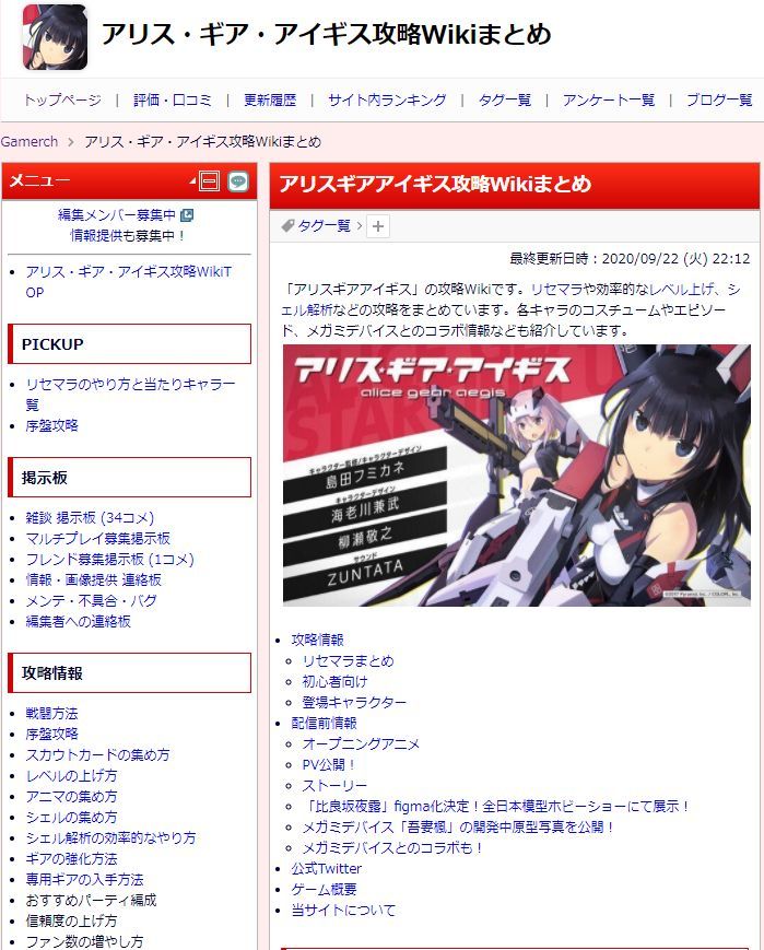 基本都是日文攻略站,但日服开服很久了,很多wiki都已停更,不过老内容也值得参考,比如:https://alicegearaegis.gamerch.com/