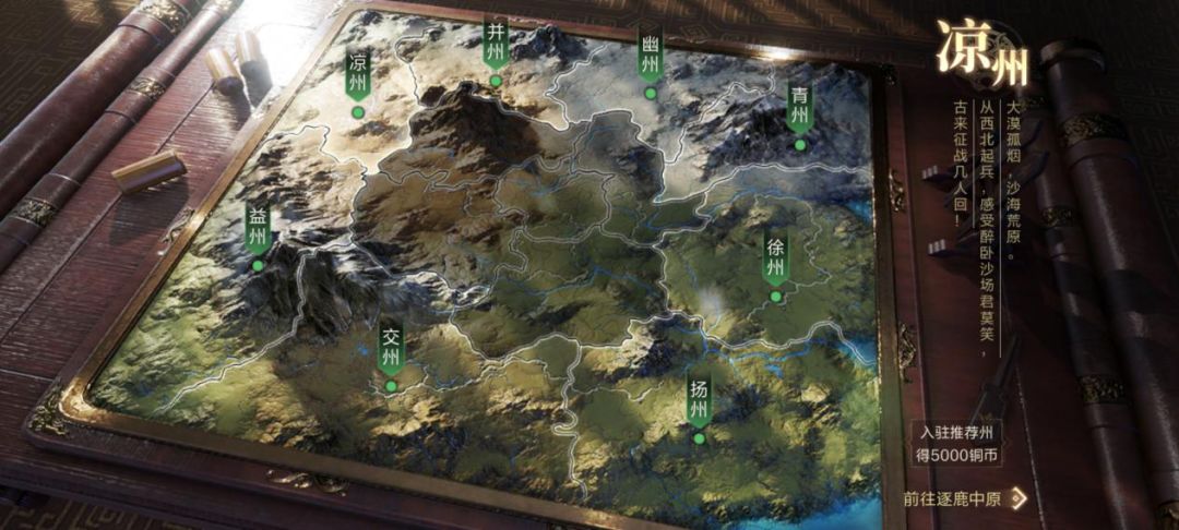 在《鸿图之下》版图中,凉州地形以沙漠为主,整体地势平坦且大片戈壁区域,极其适合机动性较高的骑兵快速冲击作战,具体可以参考历史中著名的西凉铁骑。而且凉州可以快速攻略萧关、羌道来入主雍州,打破通关之后便可进入司州自取洛阳,这也是其最具有优势的地方,相信擅长轻装上阵的各位主公能在此一展拳脚。