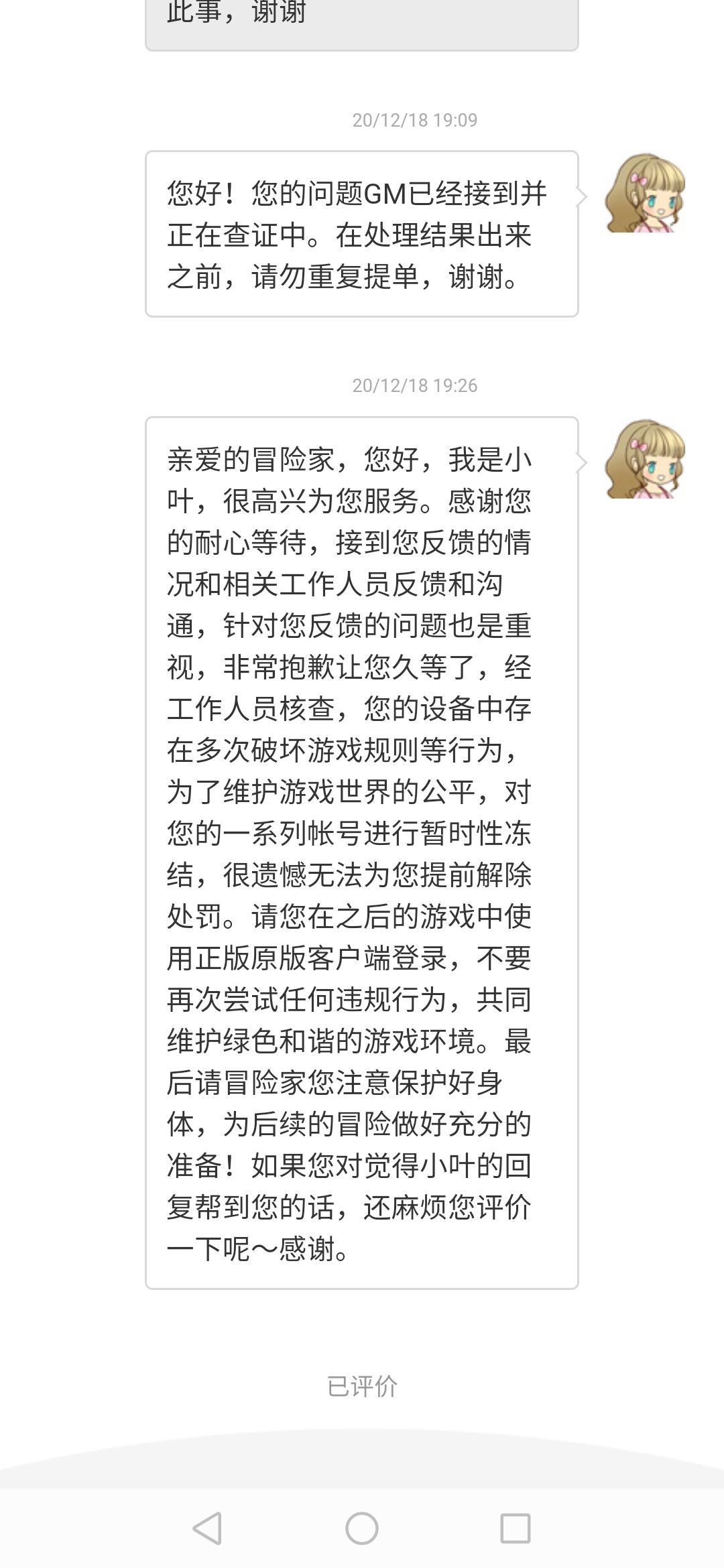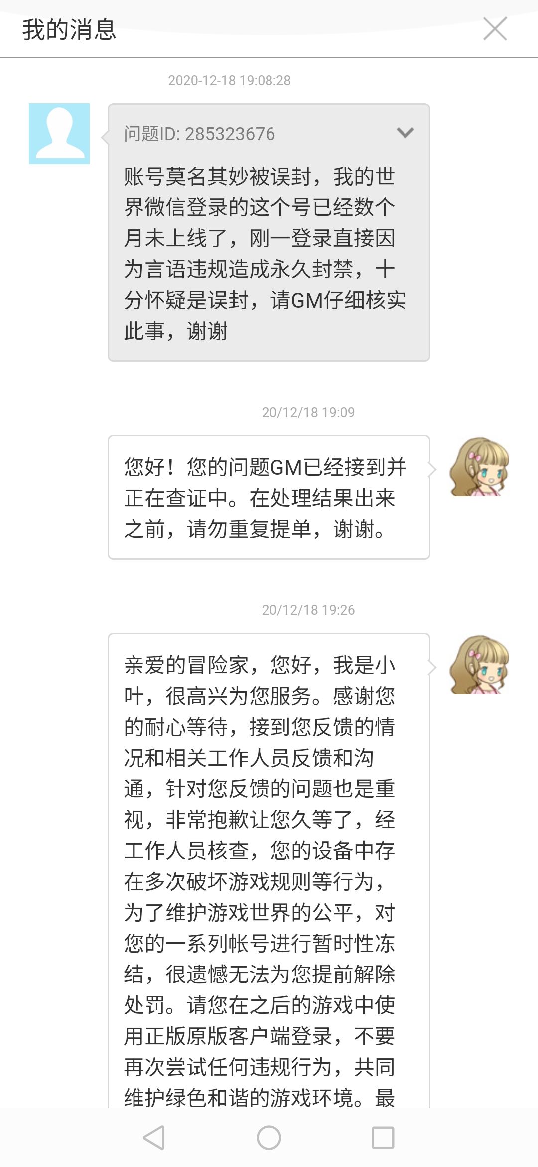 这里有个问题,那就是当时依旧在进行着游戏,而且一直玩到禁言结束之后几个小时我依旧没有被限制登录,我不清楚是延迟还是因为什么,所以当时的我依旧认为这仅仅是因为说错话被禁言而已。