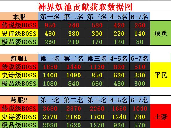 神界妖池贡献获取数据图(根据自己的实力选择适合自己的地方)