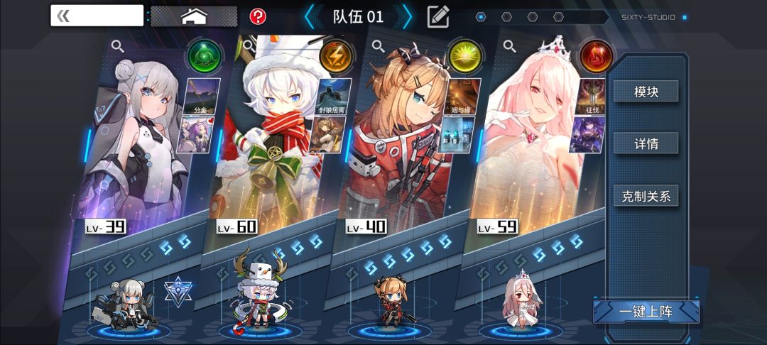 搭配问题:一般来说主流的搭配就是k带独占欲,珞珈带一点突破。前期的资源优先给珞珈,推图可以快一点。一般的万能搭配就是如下图这样。玲风一般带应急预案,因为我没抽到所以没带。