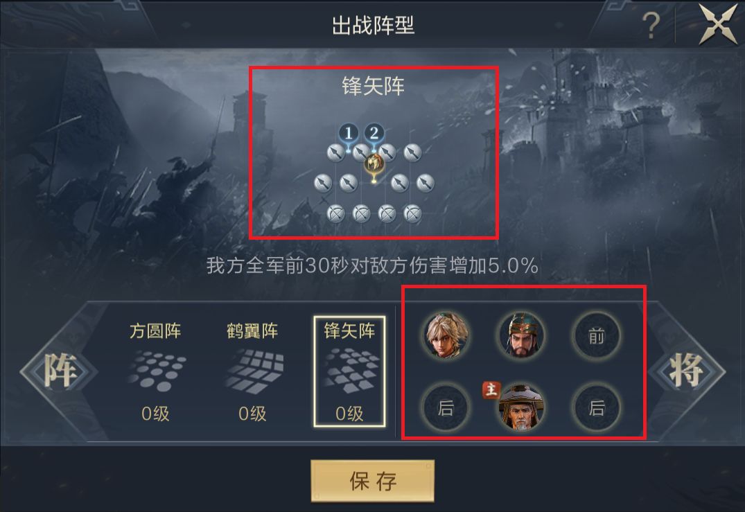 观察之后调整阵法和站位即可轻松实现攻略,同样,在尝试高级地的时候可以用废将(3星将)去探站位,再配置主力队调整站位进行爆头,4级地前就把主将(后排)和输出放在中间即可。