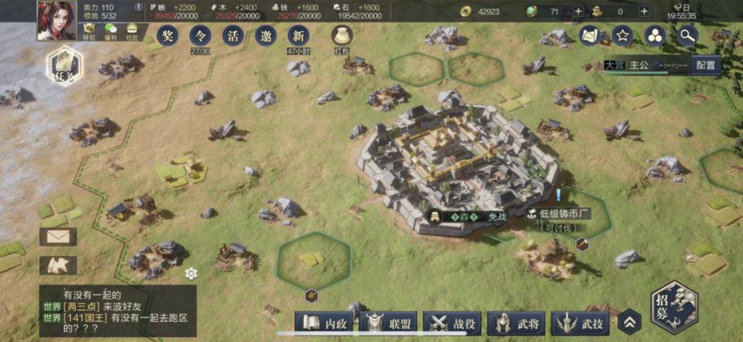 换地在这里指内部土地更换,也就是将低级资源地更换为高级资源地的过程,翻地则是直接抢占其他玩家的资源地。前期开荒玩家大部分都以抢占资源、升级七本为目标,翻地收益远低于和平发育,还容易两败俱伤,被人渔翁得利,所以不建议在前期开荒时发生争斗。
