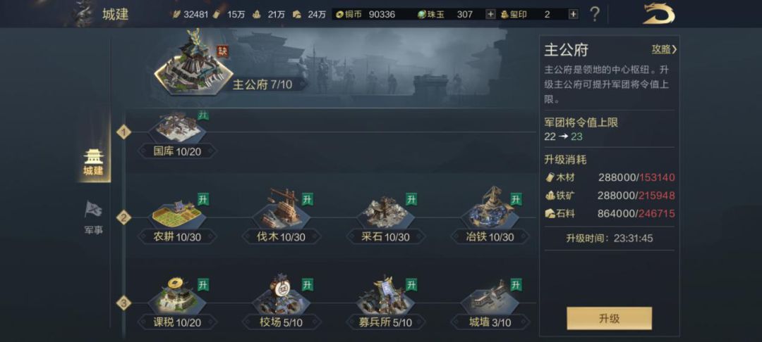 主公府是鸿图之下中最重要的建筑,快速升级主公府可以解锁更多的城建资源,玩家也可以快速提升战斗力。但升级主公府要求的资源众多,新手玩家积压各种任务资源奖励在不升级仓库(节省资源)的前提下将资源溢出(任务奖励和采集资源可溢出,自然产量不可溢出),来达到爆仓升级主公府的目的。