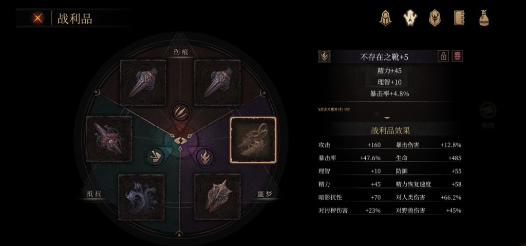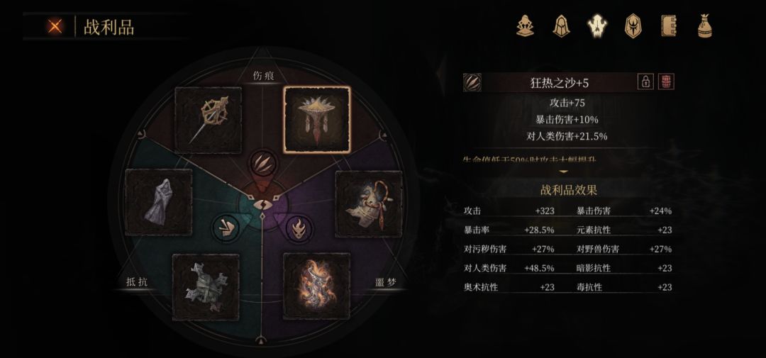 黑雾伤痕中的银光结晶、嗜血之眼、兽心石的黄字攻击收益不如其他装备提供的具体数值高,且不提供具体攻击不能配合圣徽,故不进主流构筑。(我说的够不够含蓄?)