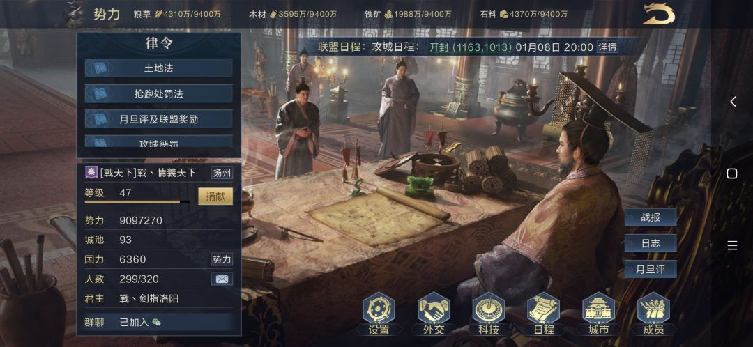 我军主力部队交替进攻,两波攻城,城市守军顷刻间灰飞烟灭。后续拆迁大部队跟进,前赴后继,36分钟内,城防值下降如瀑布般倾泻。我战盟兄弟齐心,则攻城略地亦如探囊取物。人心齐整,军容整肃,则洛阳亦可破!