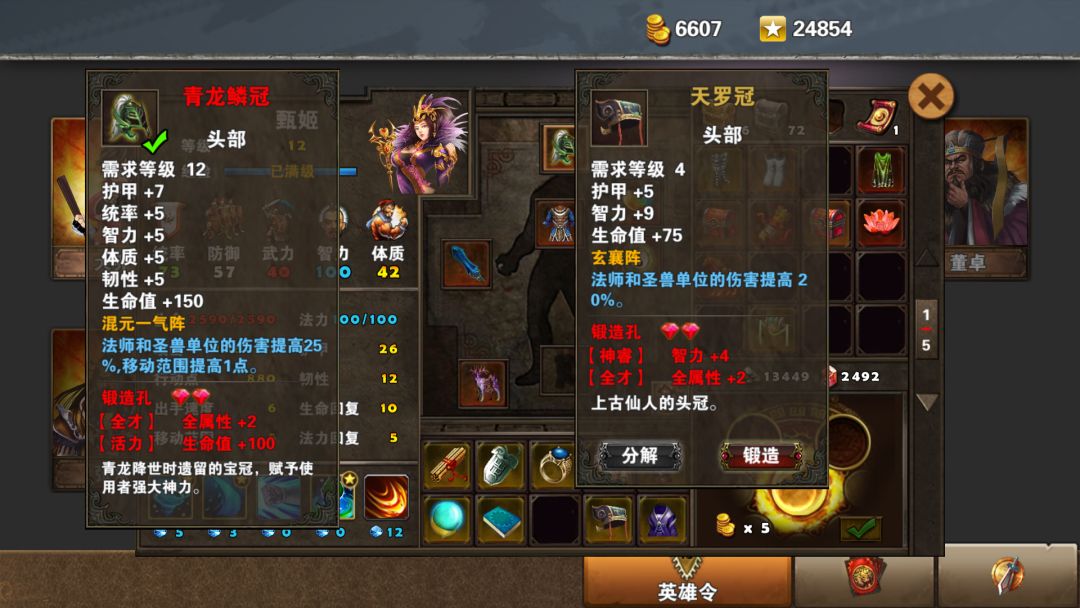青龙鳞冠和天罗冠,两件均对法师和圣兽都有很强大的效果,一起使用效果更佳。