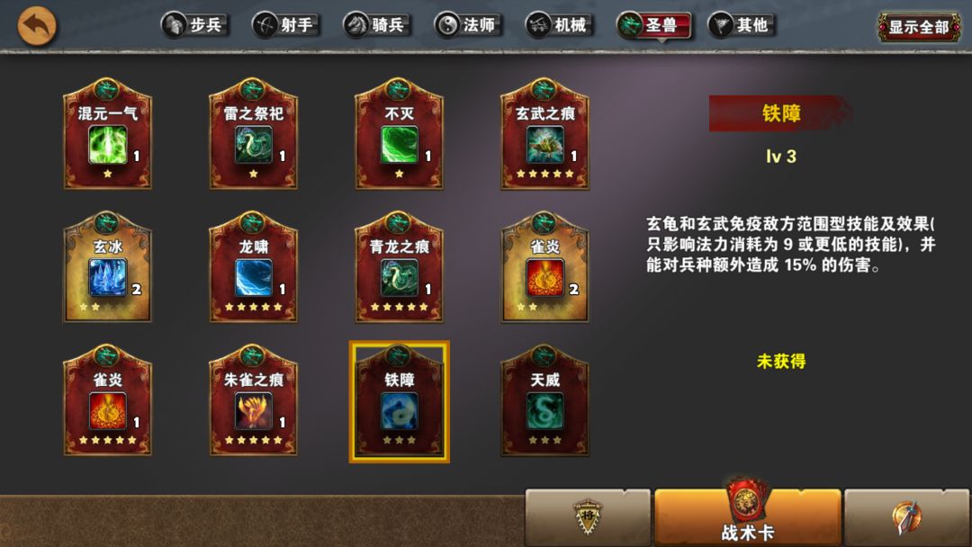 铁障,免疫8蓝耗以上的范围伤害,对兵增加15%伤害。