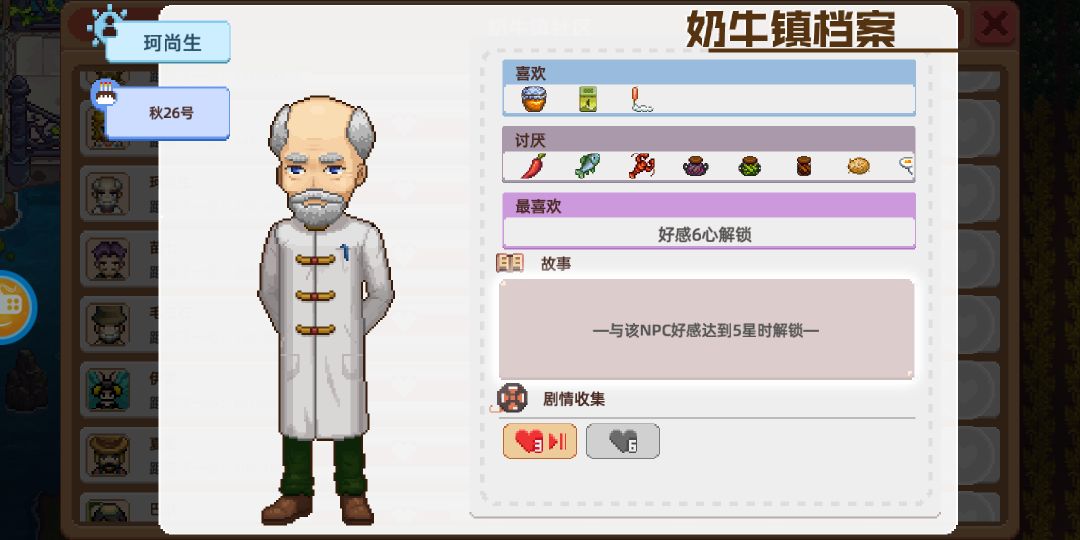 我很菜,又懒得刷npc的好感度,所以我大部分NPC都没有满好感度。