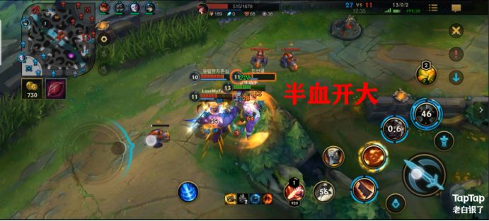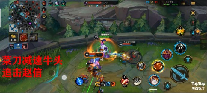 然而一身肉装的我们毕竟爆发伤害不足,还没来得及秒杀女枪,就被赶来的对面牛头撞飞,惨遭三人集火。但是对蒙多的坦度有信心的老白丝毫不慌,在自己被打到半血的时候开启大招,利用加速效果赶上女枪继续追杀。这里说一个小技巧,蒙多的大招在高血量的时候开启容易得不偿失,在低血量的时候开启又很有可能血量回不上来被秒杀,所以老白认为半血开启最为合适。