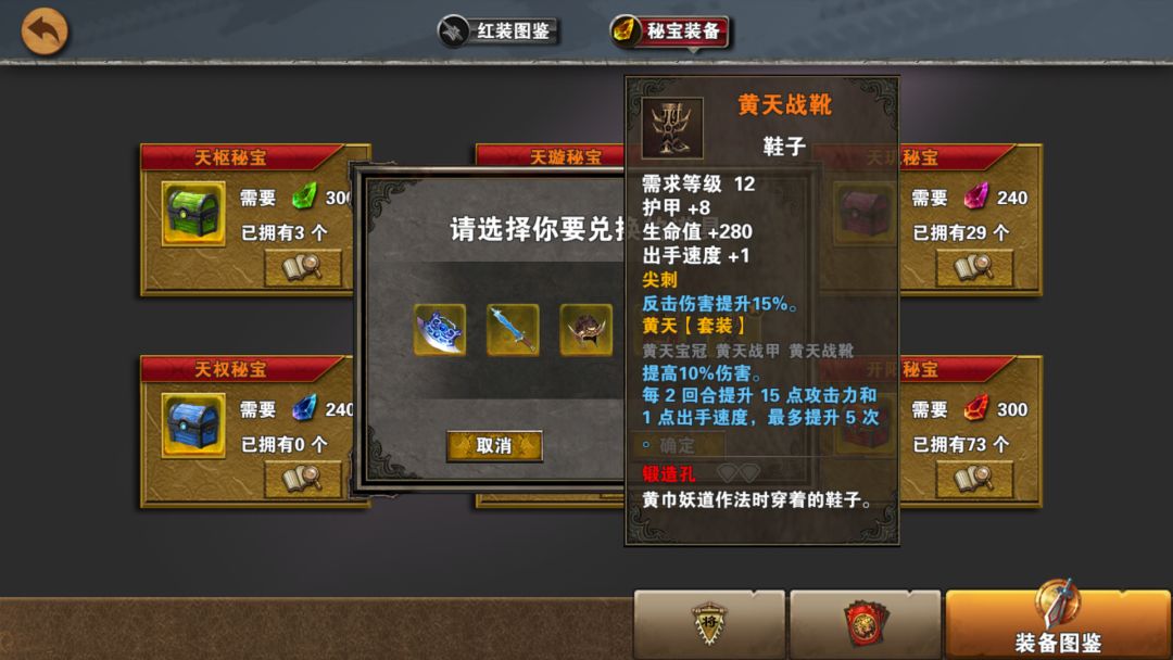 皇天三件套,属性一般,套装效果勉强,要10回合才发挥出全部效果,75攻和5手速。再加上三件,脸不好要刷900碎片,性价比极差。应该没有人会用吧。