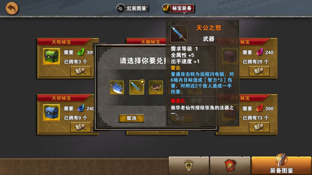 天公之怒,武器,全属性+5,手速1。攻击变为远程6格,对目标造成智力*3,对目标附近2人造成智力*1.5的伤害。