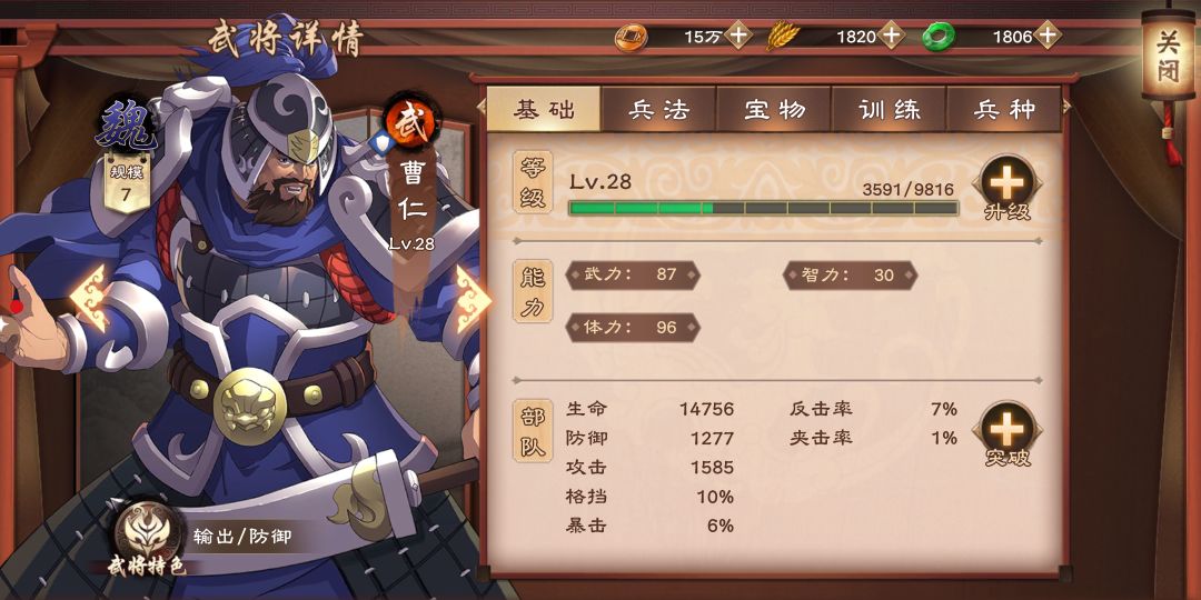 曹仁自身特技是受到的策略伤害减40%,