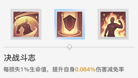 【决战斗志】血量越低,伤害减免越高。