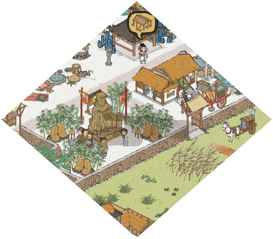 村西南隅,有乡老自号「沃垄」,草屋题名「沃垄居」。自诩智比孔明,奈何天下承平,难施抱负。