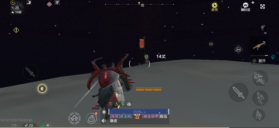 至于升空过程中凡骨的耐力不如神兽的问题也很好解决:当升空成功后不要管飞行方向,直接操控移动按钮(手机后拉虚拟摇杆,电脑长按S)保持飞行角度与地面垂直(也就是径直对准天空),记得不要按加速键,然后当耐力条清空时自然滑行恢复(滑行过程中保持后退减速),等耐力条回到一半时再重复升空操作即可(注意把握时机,在升空的三秒左右耐力条还是会自动恢复的,所以不用担心)。
