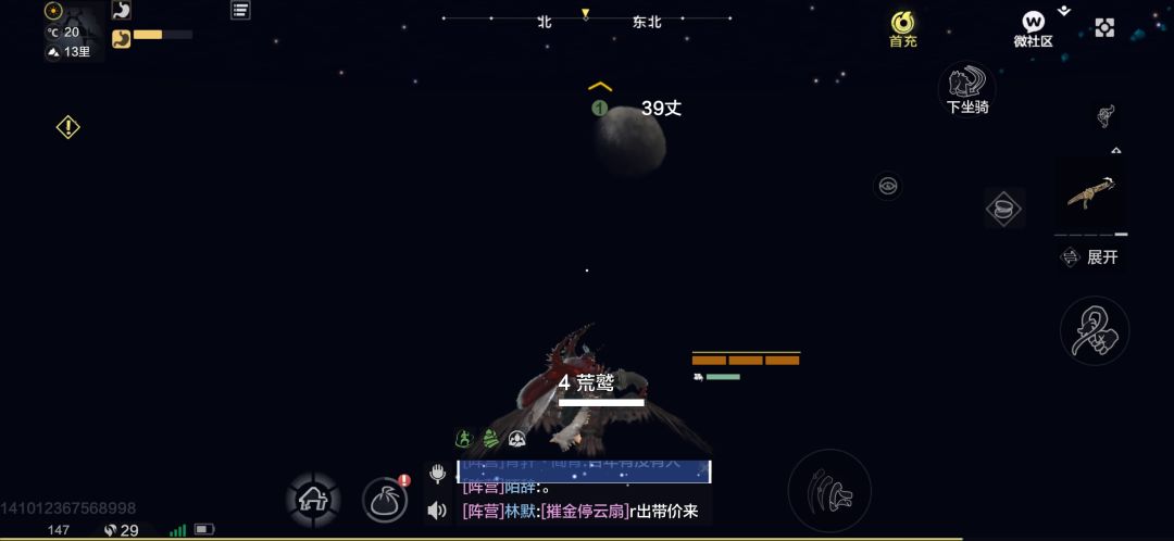 然后是在宇宙中飞行如何续航的问题。众所周知,由于宇宙中是真空的(X),所以异兽在飞行的过程中所受到的阻力是最小的。但在妄想山海里,由于山海地球的引力过大,所以我们要想保持零阻力飞行,就需要找到引力与真空带的平衡点。根据我的经验,就是在异兽的飞行轨迹与地面水平的时候,在这种情况下,我们的耐力条是不会动的,即便你按下加速键也不会消耗的那种(不过记得转向的幅度不要太大,免得一头栽回地球就前功尽弃了)。