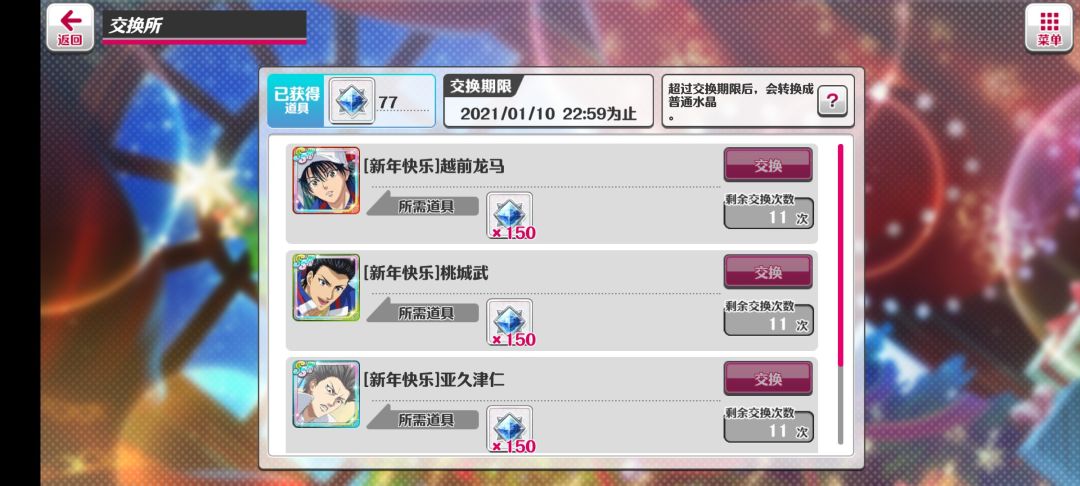 抽了这么多次了,一个龙马都没抽到!除了前几次抽到桃城和2个亚久津,之后那么多次一个ssr都抽不到!是抽到3个ssr后就调低概率了吗???