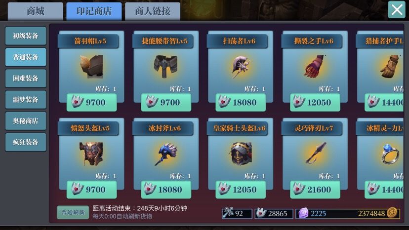 这个阶段,哥俩那去赌专属装备,优先级需要往后放。(商城刷不出,印记多的闹心再去换)