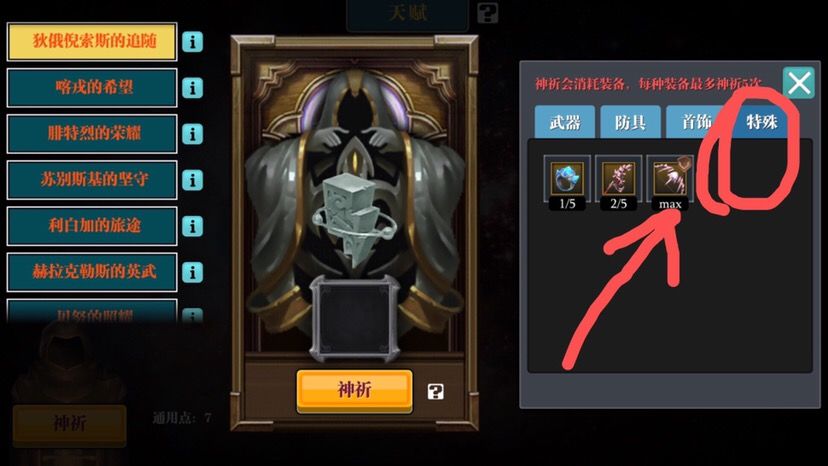 打开献祭栏选特殊,只要不是你穿的,都献祭掉,这些装备都是加专属天赋用的,千万不要错过,哪怕那个职业你现在不想玩。