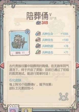 陪葬佣 活尸 结识小伙伴:王子的灵魂小伙伴30级对应兵种能力:每上阵10个部队防御+300