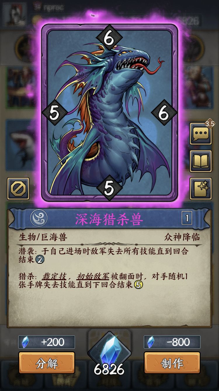 接下来简单讲讲我用的神秘卡组,海神+暴潮深海兽+深洋巨鲸+深海猎杀兽+荧光水母,基本把解牌都带满了,这游戏的玩法大致可以分成两种,实施自己的套路和破坏别人的套路,这套卡组就属于后者。