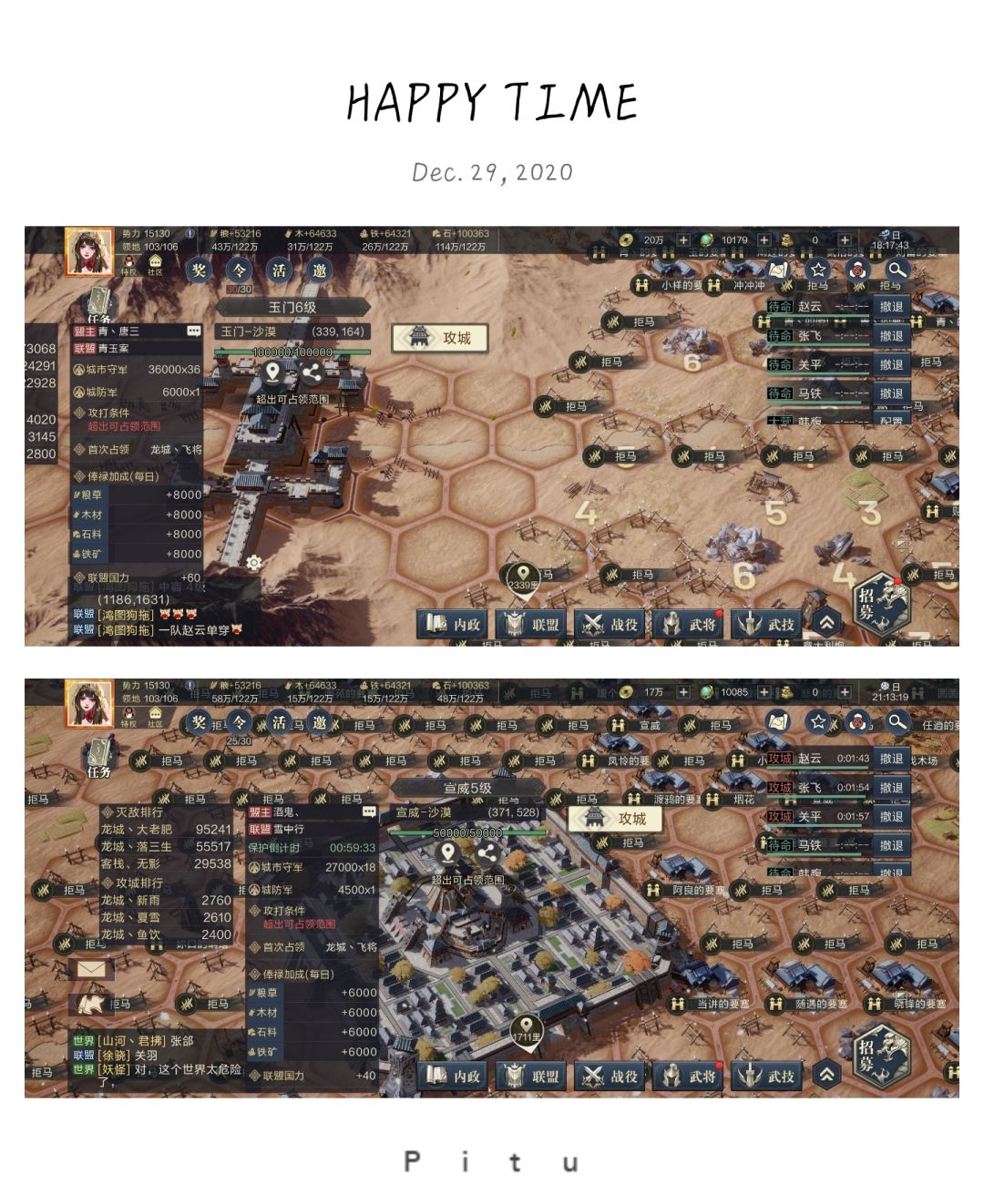 上回说到,12月28日青州【青玉案】和徐州【山河如梦】陆续抵达玉门、夜郎前线相助其盟友。28日晚18:30青并联军首次冲击玉门失败。