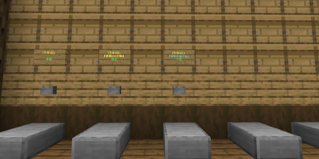 另外!请大家在选择自己的常驻生存区的时候请尽量不要选择生存1区.2区这样的,1区是无门槛进入,也就是说熊孩子可以一进服务器然后进入生存1区在里面大肆破坏,2区是满100分钟进入,虽然可能会排除掉那些一进来就捣乱的熊孩子,但也不能保证不会有那些野心大一点的熊孩子进到生存2区捣乱。当然,服主是会照顾到生存2区的,所以朋友们也可以进入生存二区发展,或是赚取梦道币进入更高级的生存区,生存区越高服主就会越放在心上,会尽量去维护那里的环境。