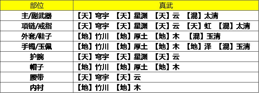 真武是气劲暗伤职业,所以在琅纹和洗炼上面我们以气劲和暗伤为主。