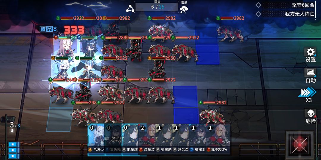 理论上来说,傀儡注入这就是竞技场也可以用这套阵容,由于自动作战的局限性,它会重复攻击机器人然后角色,这样我们既可以拖15回合获胜,也可以给后排的输出一个输出机会。建议拖回合,万一技能点全被输出用了没出机器人就暴毙。