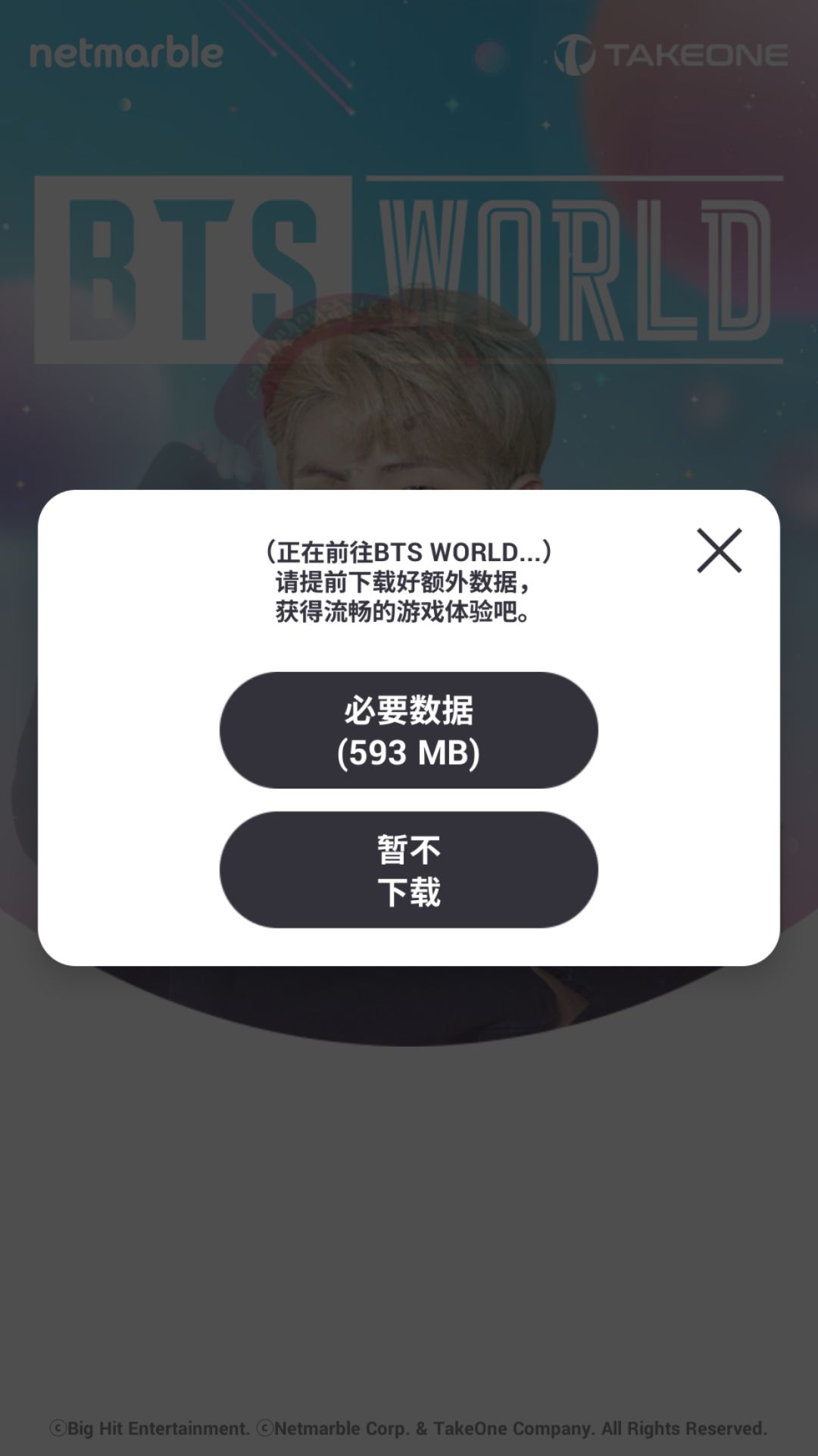 进入游戏后会有接近600MB的数据要下载,如图: