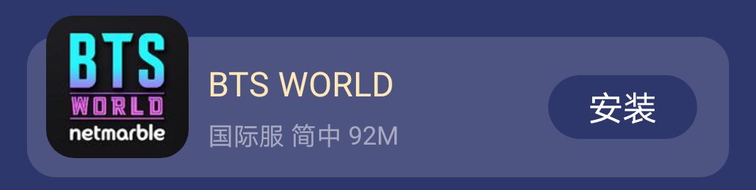 BTS WORLD属于全球发行的游戏(除了国区),所以下载相对于其他游戏来说比较方便: