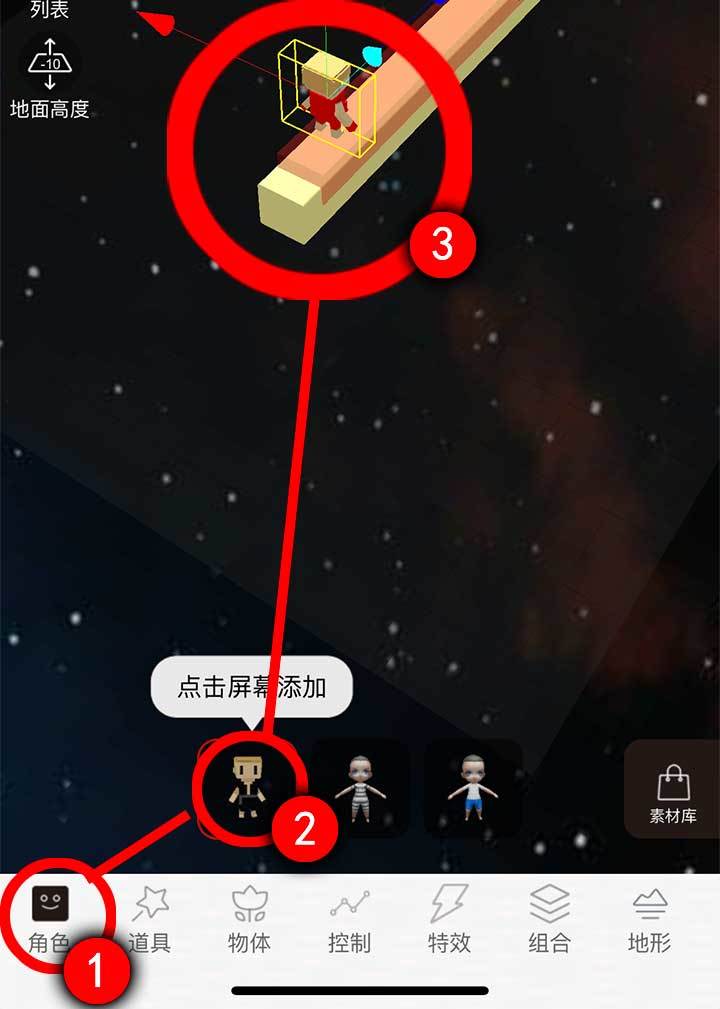 将道路上的障碍物和道具拼接的差不多时,即可开始放置角色;打开角色素材库,点开项目素材,选择男性主角,将其添加至场景中。将主角放入场景中,然后与道路对齐。因为主角跟道路对齐才可使主角能到道路上奔跑。