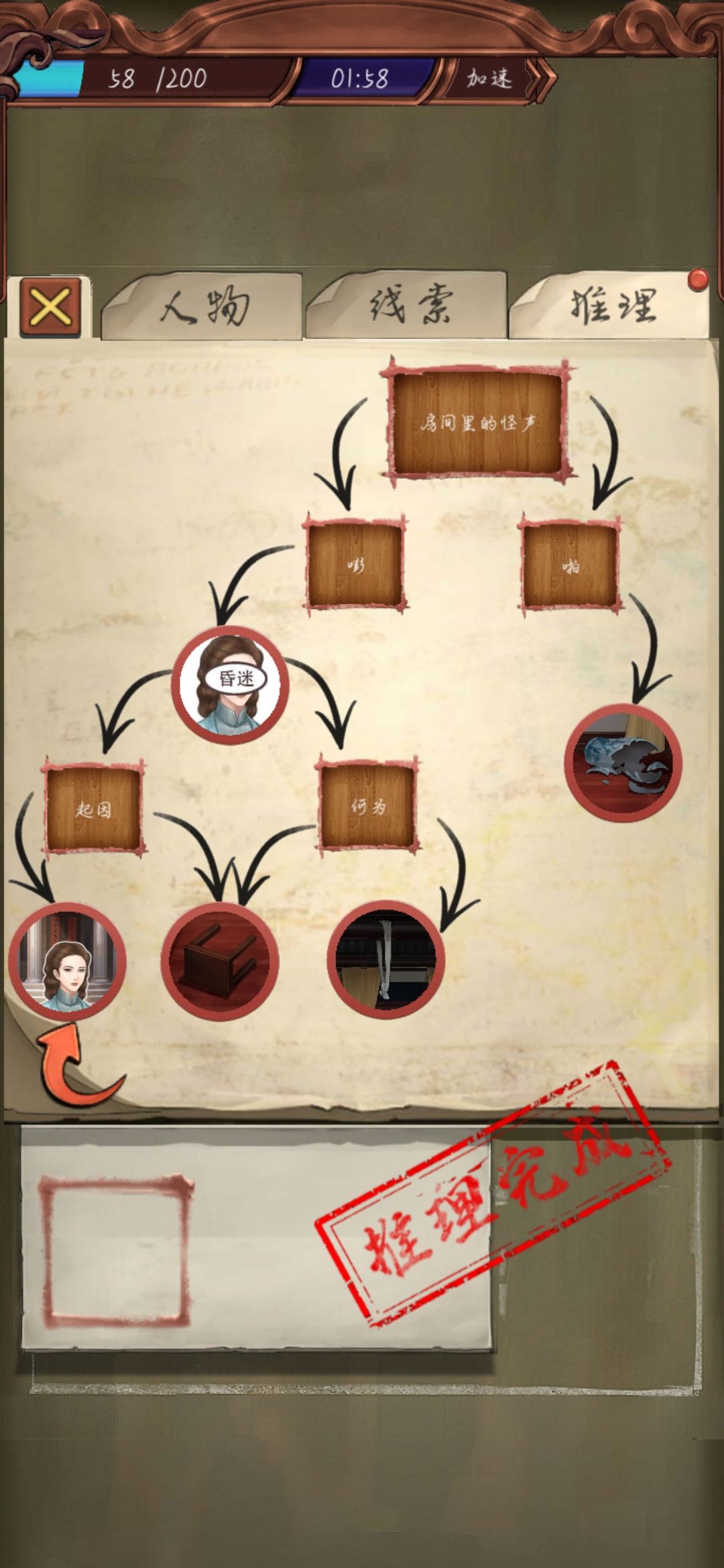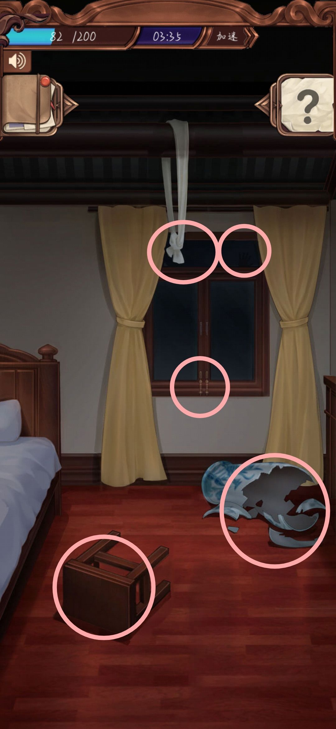 感觉这一作其实难度不是很大啦,不过有些线索藏的挺深的不太好找,提示还需要看广告,所以还是记录了一下。如果有的地方比较小点不到的话就多戳一戳(应该没有遗漏或错误)。推理方面也不是很难,有那么一两个地方略显牵强(当然也有可能是我没有理解到位),图也在下面啦。