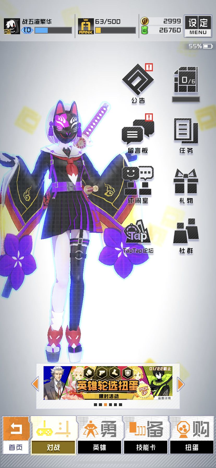 下午回家一开游戏,送了三张英雄券,一个零夜一个甘色,太爽了吧