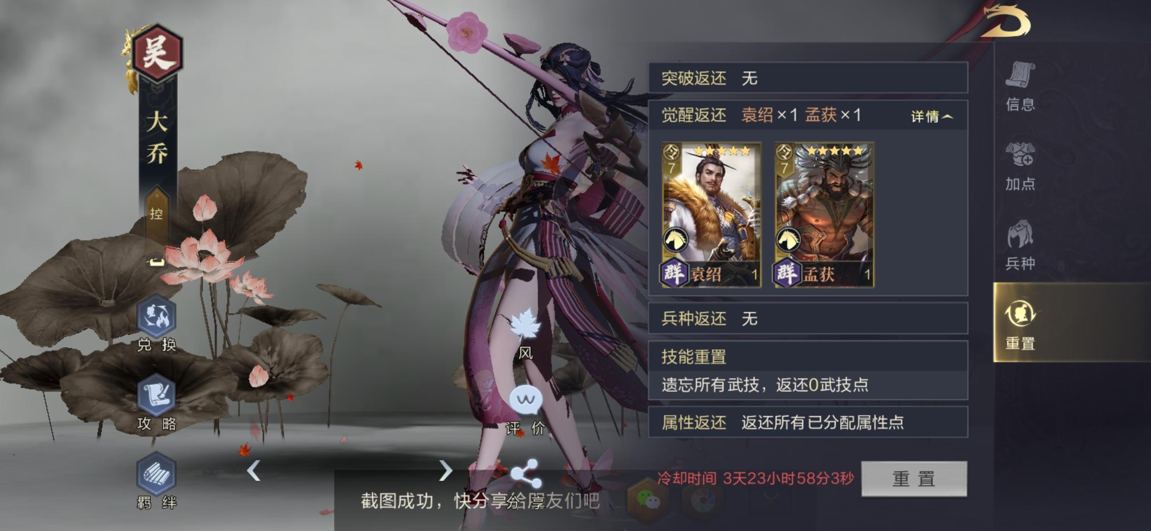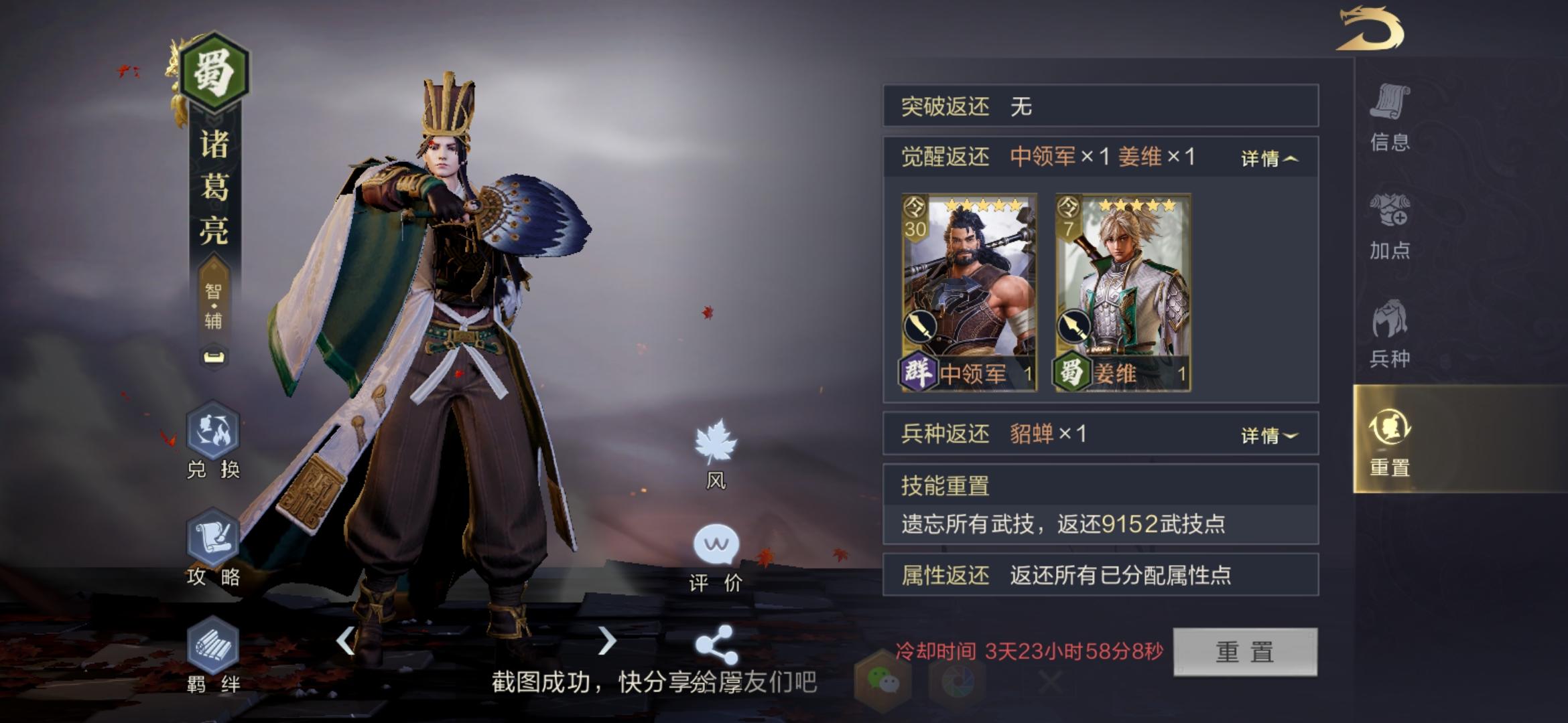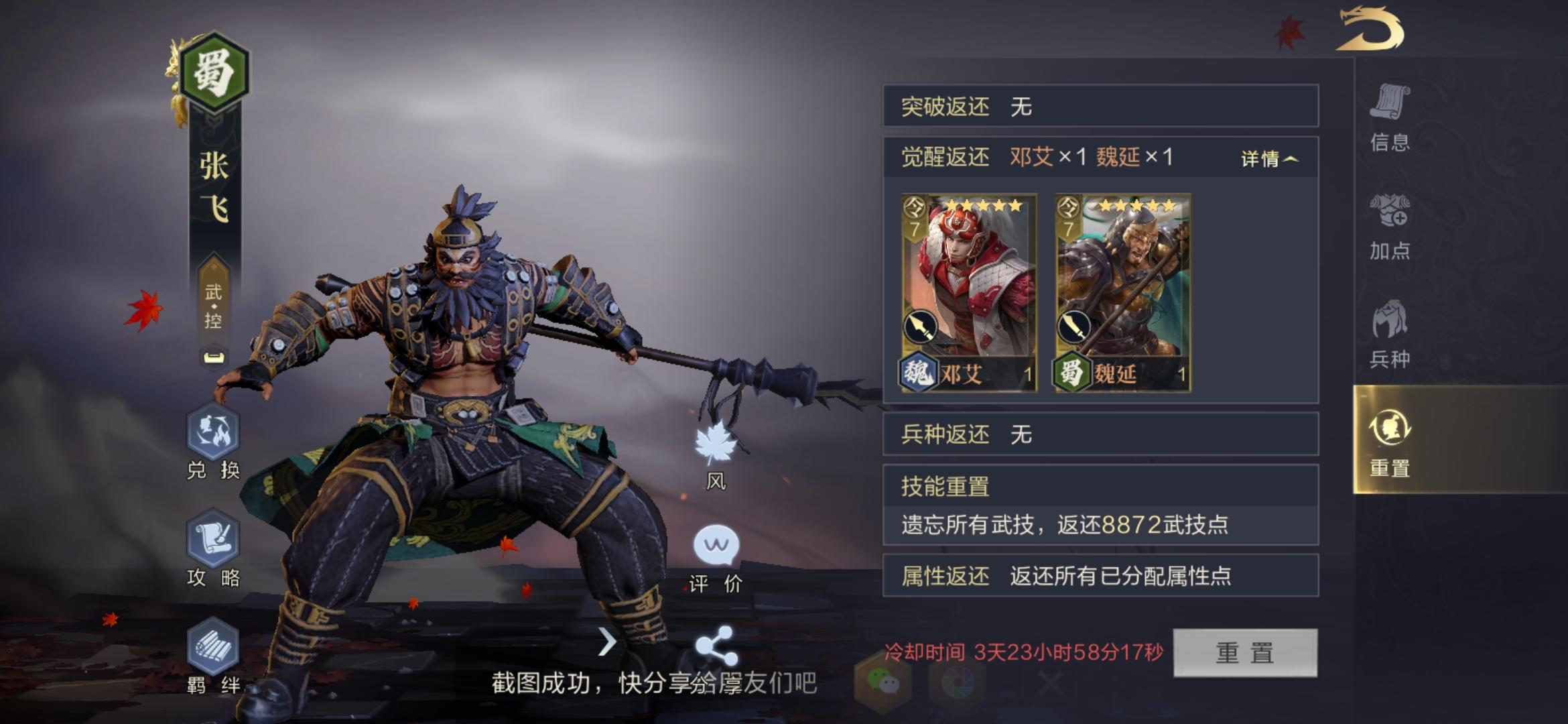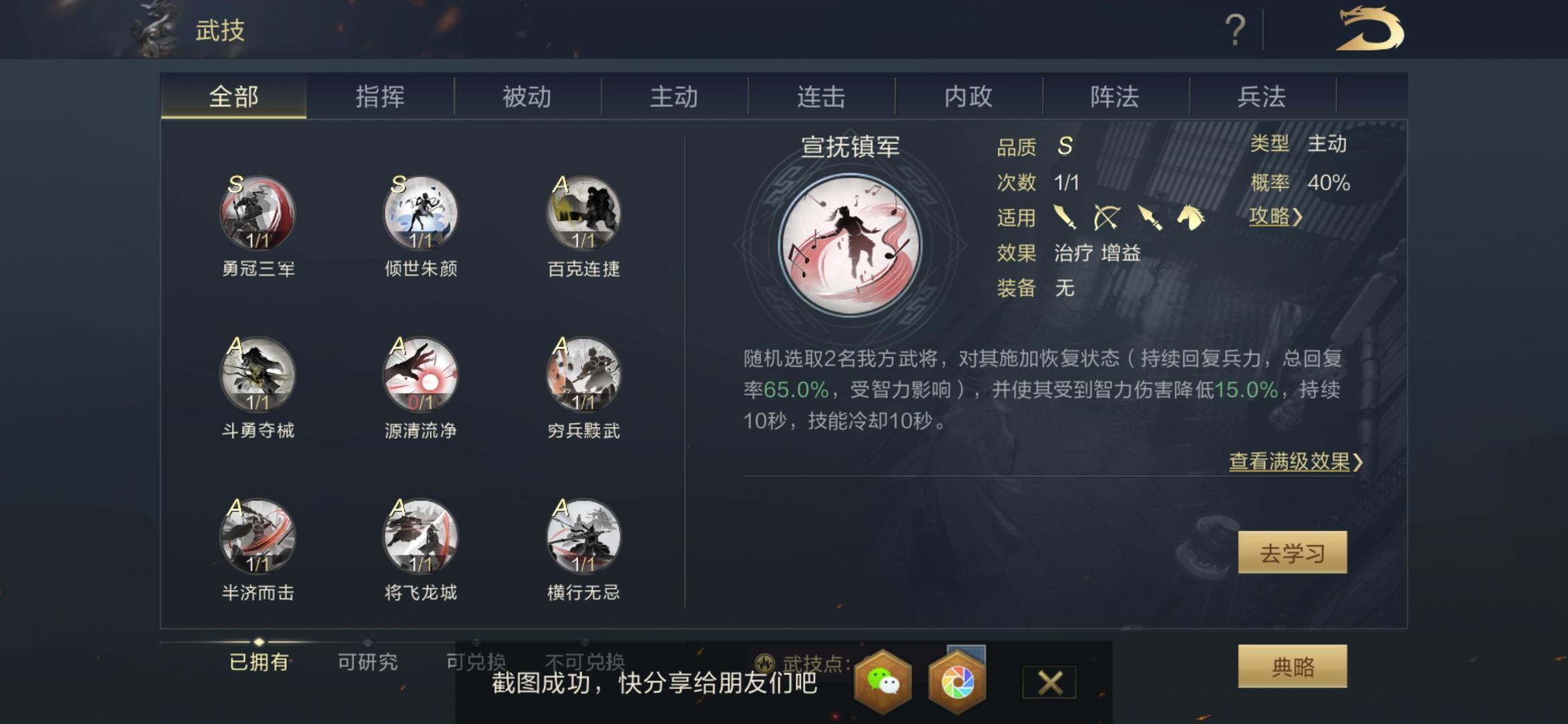 武将和武技都在这里,现在玩的是诸葛加关张。本来想着有抵挡有减伤有净化,想得太全结果一打地战损高得可怕伤害又低,六级打了好几次才打过一个。