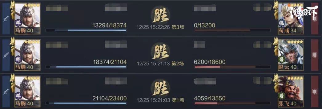 马腾的加入对骑兵武将来说是一个极大的提升,但马超的自带武技和骑兵“爆发”的理念相冲突,唯一适合作为连击核心的便只剩SP马云禄。在经历过各种骑兵打法与思路后,终于出现了一支整体素质更加稳定的骑兵队。