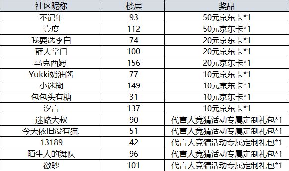 随机抽选5位,每人奖励 代言人竞猜活动专属定制礼包*1