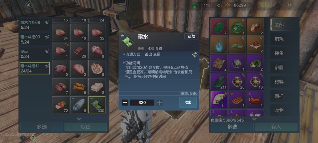 那么接下来就会有人说了,我把东西都放在柜子里,我出门要用,怎么办?那么应该把什么东西放在柜子里呢?首先这里你想一下,你出门需要用什么东西,那么你不需要的东西,那就可以放在家园的柜子里,比如百年巨兽的材料,半成品,食物材料当你需要的时候,你只需要传送回家,把柜子打开就可以取出。