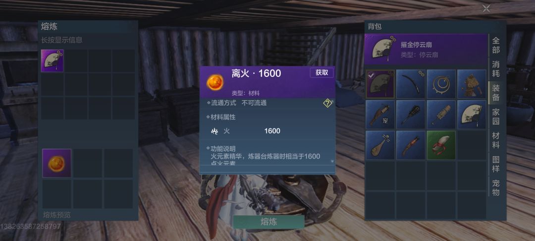 在家园使用熔炼炉,把装备熔炼成炼器材料,每一个炼器材料的重量只有一,而且炼器材料是可以叠加的,也就是说,当你有多个同种类的炼金材料的时候,它们只占柜子一格。