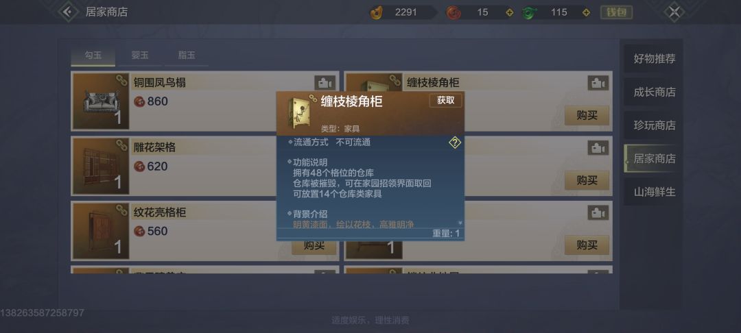 那么这个时候就会有人问了这个柜子的格数太小了,怎么办呀?这个游戏是有更高级的柜子的,目前你可以在商城里面购买到高级的柜子,或者通过活动获得高级柜子的制作图纸。