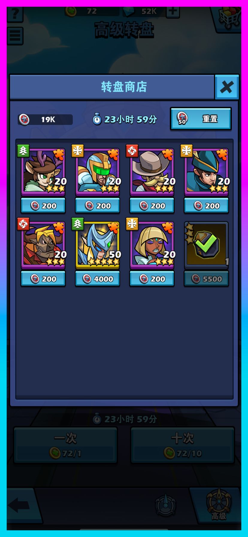 同样,也有高级转盘,里面的奖励内容更好,但需要花费命运金币。活动针对的是消耗命运银币的玩家们,所以这边可以看作附属品,有命运金币可以来这里逛逛。