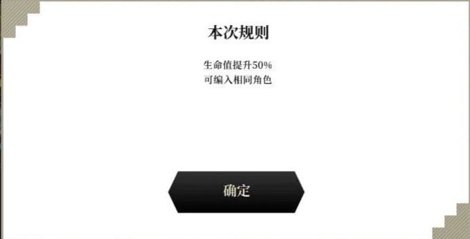 活动规则:生命值提升50%、队伍内可编入相同角色
