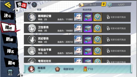 今天为大家带来一个PVP玩法—学员竞技为,可以通过挑战其他玩家获得竞技积分,提升排名,获得钻石、声望、扭蛋币奖励。▽