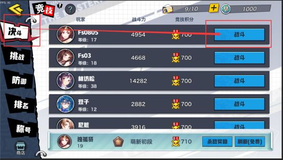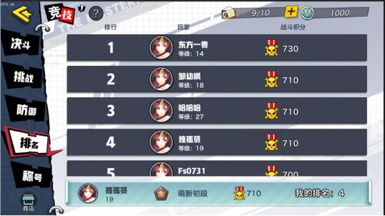 在决斗中可挑战其他玩家,需要消耗挑战信,挑战成功获得竞技积分,挑战失败则失去竞技积分。▽